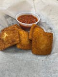Eggplant deep-fried served with marinara and provolone cheese on top.
