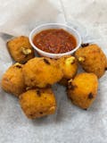 Fresh meatballs simmered in our house, marinara, and served over cavatappi pasta, and topped with mozzarella cheese